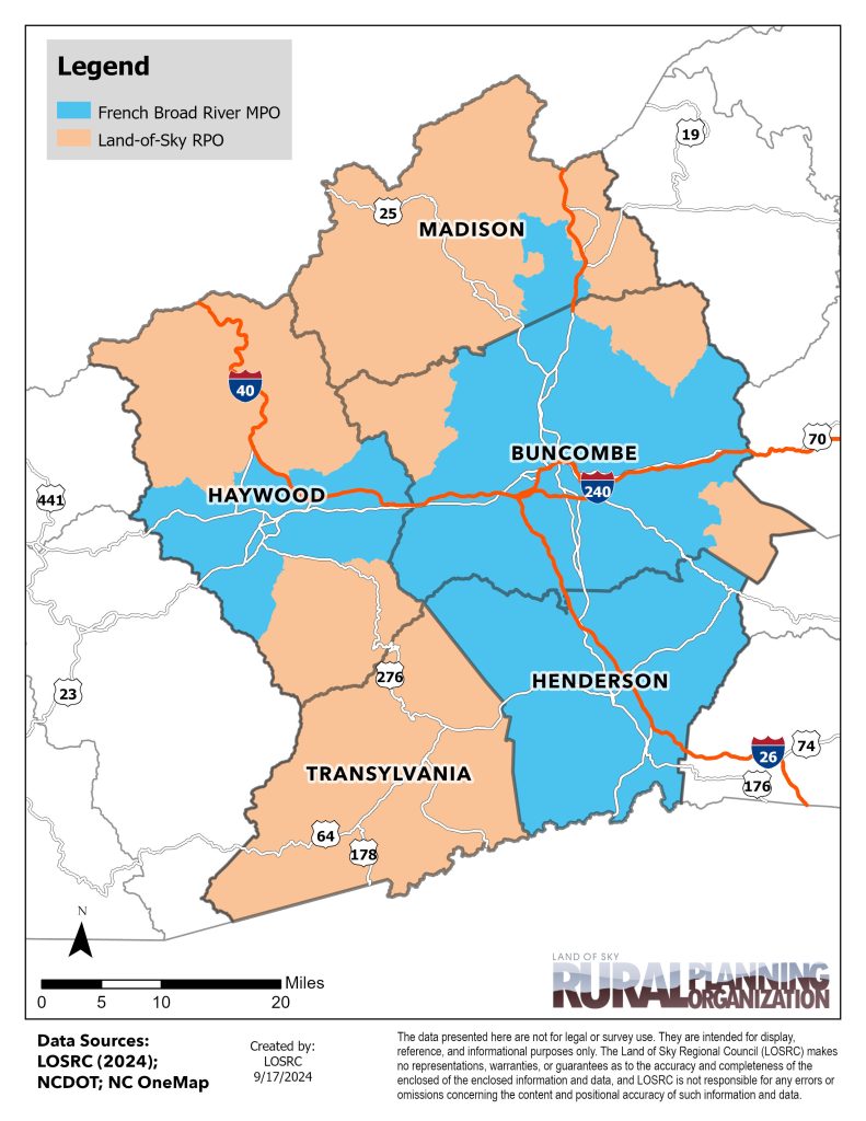 The Land of Sky Rural Planning Organization (LOSRPO), is a rural transportation planning organization housed at the Land of Sky Regional Council (LOSRC). The LOSRPO was established in 2003 and is one of eighteen multi-county rural transportation planning organizations across North Carolina